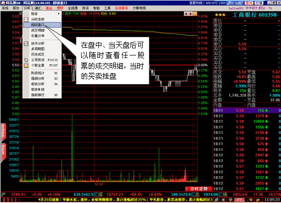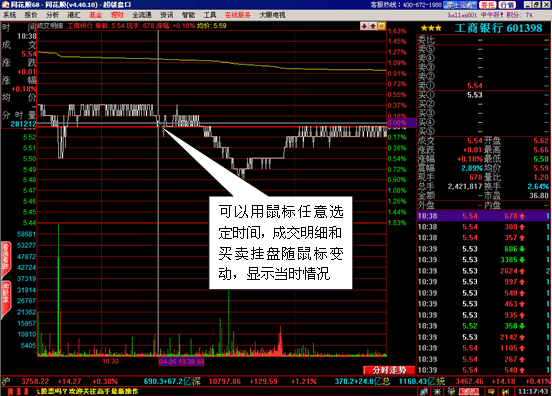 在这里您可以查看任一股票的详细成交状况,我们会将每一笔成交发生时的买卖挂盘变化重现在您的面前。