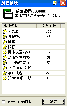 利用这个功能可以显示个股所属的板块概念,以及该板块的股票个数,双击板块名称可以切换至选中的板块,显示该板块的所有个股。