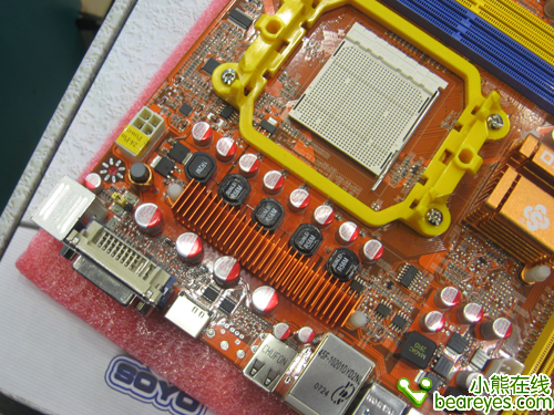 供电部分,它采用了五相全固态供电电容加全封闭式电感线圈的组合,这在整合产品中还是极为少见的,稳定性是毋庸置疑的,即使用户超频操作也能轻松满足。