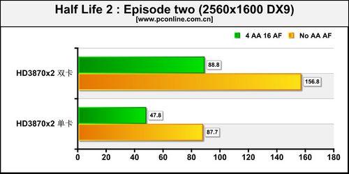 从我们测试的七个游戏来看,多卡协作的道路发展并不顺畅,许多历史遗留下来的老难题,目前仍没有得到有效的解决。这突出表现在《英雄连》和《孤岛危机》这2个DX10游戏中。从测试结果来看,无论是采用双卡交火组成的HD3870x2还是单卡HD3870x2,这两套完全建立在交火技术上的显卡系统都表现平平,成绩差强人意。不过,令人欣慰的是,在绝大多数游戏测试中,4卡组成的交火系统发挥出惊人的威力,性能提升在80%以上。