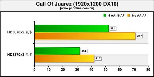 《Crysis》仍然对多卡互联技术支持较差,新的驱动并没有给HD3870x2 带来更多惊喜。