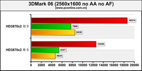 最后,从平台的角度分析,目前CPU的性能已经成为了这套平台的瓶颈,虽然我们把处理器的频率超频到3.6G,但其仍然阻碍了显卡性能进一步的发挥。在3DMark 06标准分辨率下得分为20658分,仅仅比单张HD3870x2显卡高出2000多分。(国外有玩家在提升处理器主频的情况下,成绩突破了30000分)同样,在我们所采用的2560x1600分辨率下,HD3870x2显卡所搭配的512M显存也成为了显卡性能发挥的瓶颈。如此一来,想要完全体验到这套平台的魅力,在处理器方面需要投入更多的资金。
