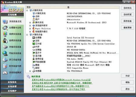 作为国内性能最优异的系统优化类免费软件之一,“Windows优化大师”(下载)早已家喻户晓、声望显赫,作为目前唯一能够同时支持32位和64位Vista操作系统并且正式通过微软官方Vista认证的国产品牌软件,“Windows优化大师”当之无愧的成为系统优化和系统软硬件检测的权威。
