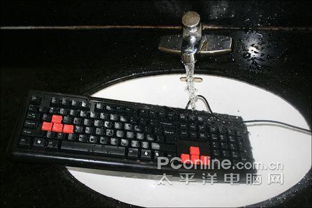 有的读者可能注意到,PS2接口似乎没有浸水。其实对电子方面有所了解的读者相信都知道,PS2接口作为与计算机主机相连的部分,如果湿水的话坏的可能不是键盘,而是整台主机。测试后笔者就进行重复的测试。在重复测试中,键盘的使用并没有受到影响,一切功能都还能正常使用。因此笔者作出结论,双飞燕网吧键盘G300通过了本次防水测试。