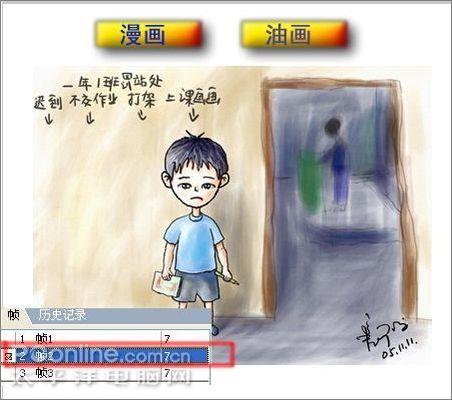 十七、使用选择工具,将漫画切片中心拖拽到位图切片区,并在弹出的交换图像中选择帧3,如图17所示。