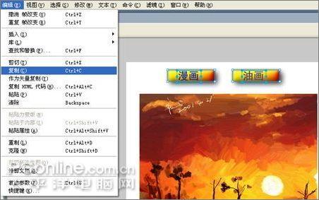 十三、选择两个按钮,点击:编辑——复制(快捷键为Ctrl+C),如图13所示。