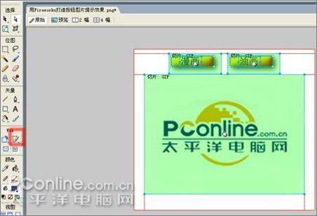 本教程利用Fireworks的层、帧、切片等工具,让Fireworks自动生成javascript来打造图片提示效果。通过学习本教程,读者可了解到关于层、帧、切片及导出html网页格式的方法及技巧,而且网友们还可以将此种效果应用到各种网页上,最终效果如下(光标放在按钮上,下面的提示图片也相应的发生变化):