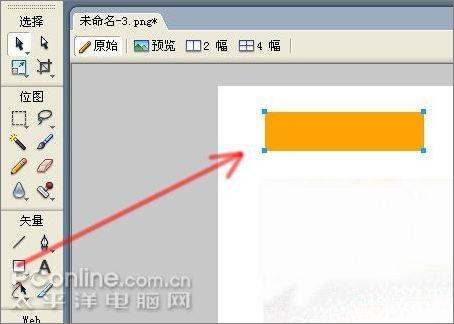 六、选择矩形工具,在画布上绘制出一个矩形,并设置为黄色。如图6所示。