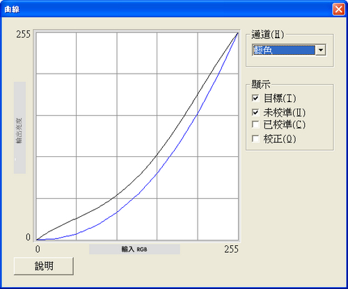 校正后RGB自定义成99 92 96,另外产生ICC Profile套入,校正后的曲线和目标几乎重迭了。