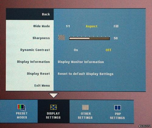 首先报告几个坏消息,3008WFP没有子母重迭画面的PIP模式,只有两个讯源并排的PBP模式,而切到这个PBP模式到画面秀出来需要11秒,中间只能呆看全黑画面,切换单一讯源需要8秒,跟之前的2405/2407差不多,可是秀出并排画面的时间实在太夸张了,用过2405/2407的一定很不习惯,因为这两台都是瞬间跳出PBP画面。