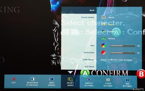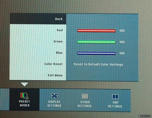 总之,看了一堆风景、美女图和影片之后,我还是觉得默认值最好,OSD里也有提供一大堆情境模式,数字和模拟端子还各有自己的模式,也有RGB独立调整,加上是S-IPS面板,如果不满意原厂的颜色,加上校色器一定能弄出你想要的准确颜色。