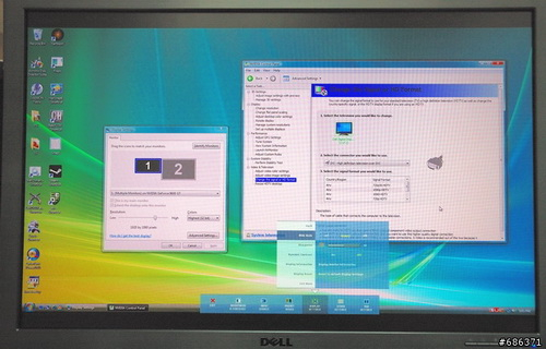 这是用NVIDIA 9600GT的Single Link接3008WFP的情况,最高只能开到1920x1080,这应该是驱动程序有Bug,理论上可到1920x1200。幸好可用OSD的Aspect设定来显示正确比例,只是上下就黑掉了。