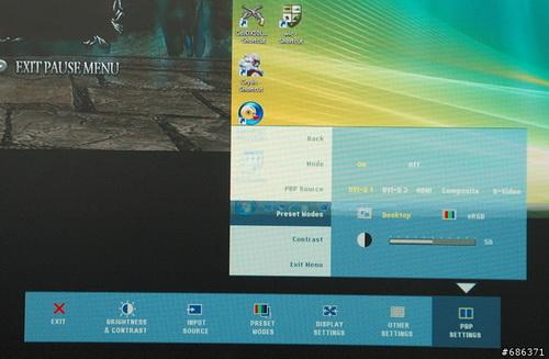 其他480i的Composite和S-Video我就不测了,因为买这种屏幕就是要接次世代的机器(其实是我懒了...-_-),接着来看3008WFP的OSD功能,有这么多端子,一定要有很强的OSD功能来配合,尤其是讯源切换、比例调整、子母/并排画面等等。