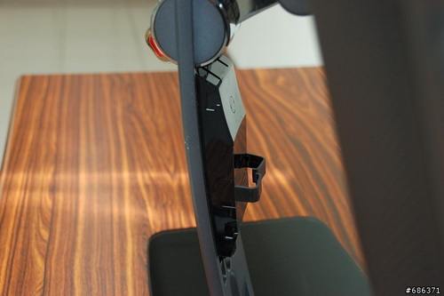 底座好像是强化玻璃做的,蛮容易印上指纹,圆盘则几乎不费力就可以旋转,比2405/2407轻多了,只要一根手指头戳一下就会转了,但也因为如此,调整OSD时很容易就让屏幕往右边偏。