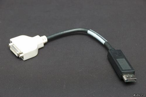 这是青云特别借出的转接线,虽然DisplayPort的讯号和HDMI完全不一样,但DisplayPort线路规格允许送出DVI的讯号,所以图中这种单向转接头还蛮好做的。但它有很多限制:1.它只能从DisplayPort转DVI;2.转过去之后只剩Single Link DVI(因为Dual Link DVI针脚数大于DisplayPort)。要做成DVI转DisplayPort,或是转过去有Dual Link DVI,就得另外加芯片到转接线里。