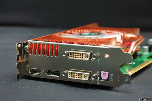 这张卡后面有DVI x2、HDMI和Displayport,其中HDMI和DisplayPort不能同时插。