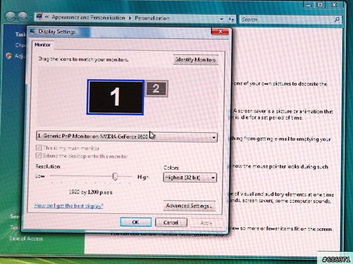 不过这个功能在NVIDIA与ATI卡上有不同的状况,同样是用Single Link DVI接3008WFP,NVIDIA的卡只能到1920x1080,往上一级1920x1200画面就会错乱;ATI则能正常秀出1920x1200,但再往上到2560x1600就会有同样的错乱画面。错乱是正常的,因为Single Link DVI本来就不支持1920x1200以上,但NVIDIA只能到1920x1080的问题,我猜可能是Driver有小bug。
