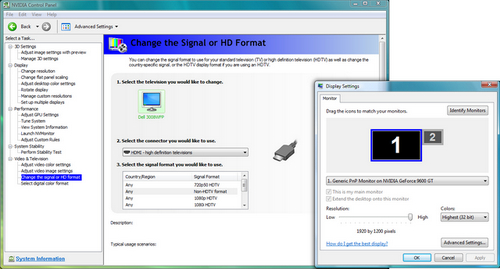NVIDIA 9600GT用HDMI接3008WFP,直上1920x1200完全没问题,不会出现Single Link DVI的bug。