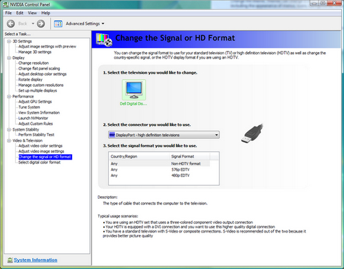可惜的是,用DisplayPort就没有声音了!这反而让我大吃一惊,因为我一直以为DisplayPort和HDMI一样可同时传视讯和音频,仔细翻了一下白皮书才发现,DisplayPort的音讯传输是“选用”的,没有一定要支持,而且DisplayPort的音频是全新规格,并非现有的SPDIF,不能像HDMI那样转接混合输出,NVIDIA原厂也确认9600GT(G94)并没有转换成 DisplayPort音讯的能力。由于没有讯源,我也不知道3008WFP能不能译码DisplayPort的音频,但我猜应该不支持。