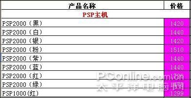 主机价格方面,目前索尼PSP2000粉色版卖到了1510元,红色版更是飞涨到1720元。而其他颜色也大幅度涨价,基本上回到了年前的年度最高价。