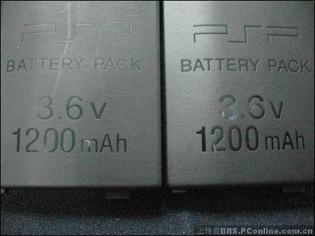 继续PSP电池问题。由于目前高仿与原装的差价在百元左右。因此大家对真假电池的鉴别一定要用120颗心。一不小心,原装电池被换了,那等于间接被斩了近100!看了上图,你认得出哪块是PSP原装电池么?