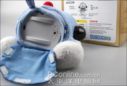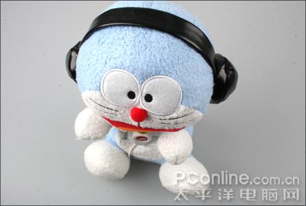 MC Dora作为一个毛绒玩具(OR 数码音箱?),首先我们就先看看其外表的做工如何。通过图片我们可以看出,MC Dora在做工上十分细致,许多细节都比较忠于原著,原汁原味。头上的耳罩使这个哆啦A梦有点不同,也就是哆啦A梦の音乐指挥家(MC Dora)的由来。脸部的刻画都比较细致可爱。颈部一条红红的带子绑着前方的小叮噹,十分经典。其下方中间带有音乐符号的装置,是这个MC Dora的音乐播放器,实际上是一个使用时的指示灯。它牵带着的长长的插头,可连接各种随身AudioPlayer。再下方的百宝袋并不能带来千奇百怪的法宝,不过拿来放置即将要连接的播放器(例如Ipod)还不错,后面的尾巴,原著中为哆啦A梦的紧急控制杆,所以外部为步料,内部材质比较硬实。MC Dora的屁股其实是一块可打开的布料,里面为电池装置和电源开关。
