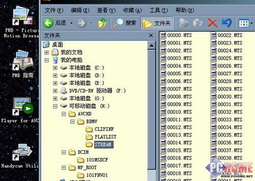 AVCHD目录内包含了全部采用MPGE-4 AVC/H.264格式编码的高清视频文件(原始扩展名MTS,通过PMB转换到硬盘后变为M2TS);