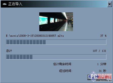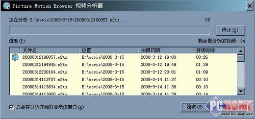 数据全部导入完毕后,PMB软件自动启动并询问用户是否要对导入的视频进行分析。这个分析功能会自动为视频文件增加检索片段,保存日期信息以及为后期处理做准备。这个分析的过程相对耗费时间,如果用户仅仅是为了在电脑上欣赏影片而并不打算做太多后期工作的话,我建议还是跳过这个步骤。