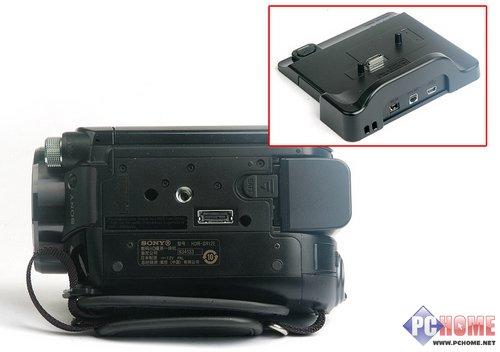 事实上,索尼SR12E机身上的这几个连接端子在我的试用过程中完全没有用到过。这并不代表着我完全不用到索尼SR12E的I/O接口,而是因为我是使用索尼SR12E包装盒内附带的这个数据底座完成各种连接的。