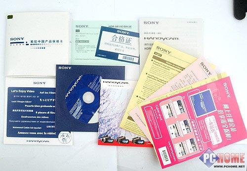 下图表现的是纸制和光盘配件,无非也就是各类说明书、宣传资料、保修卡之类七七八八的东西。光盘则有两张,其中一张是索尼DV产品的广告DVD,另外一张则是索尼SR12E所用的Picture Motion Brower(PMB)软件。值得注意的是,索尼SR12E包装盒内所带的产品说明书只是一本极薄的小册子。这本小册子内容很简单,只是介绍了索尼SR12E的一些基本操作,与其说是使用说明书,还不如说是“快速上手指南”更为贴切一些。如果用户想要了解索尼SR12E更多详细操作说明,请直接阅读配套光盘里面的PDF文件。
