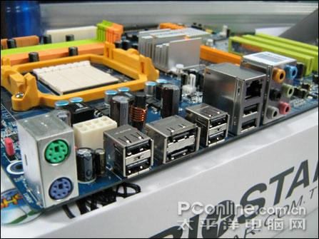 精英 A770M-A主板提供2个用于连接鼠标和键盘的PS/2端口,1个串口,1个eSATA端口,6个USB端口,内建千兆网卡和8声道声卡。