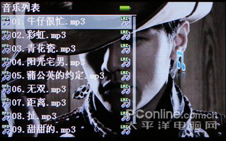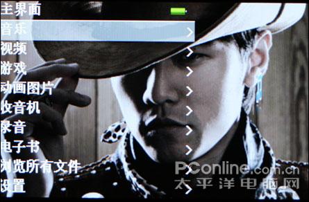 平时的上下操作由音量键负责,歌曲选取按键负责确认退出的任务,而在图片浏览等多图标选择的时候,音量操作键负责上下移动,歌曲选取则负责左右移动,确定和推出按键则换成了播放按键和菜单键。按键成半椭圆形,间距合理。按键的职能分布比较合理,总体的操作很容易上手,很流畅,机器的反应速度也比较快,菜单的美工做得相当不错。