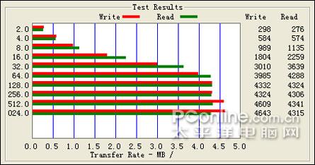 昂达VX757的传输速度表现出色,最高写入速度为4643,最高读取速度为4324。