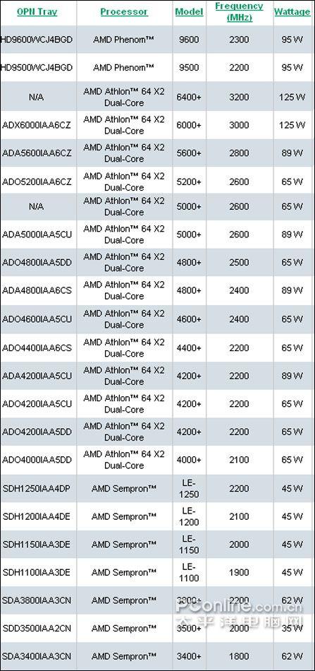 AMD处理器功耗数据