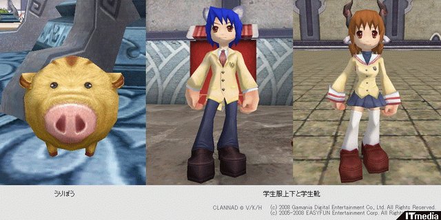在日本运营,由大宇资讯开发的卡通风格网络角色扮演游戏《飞天历险Online》近期正式推出了以人气卡通《CLANNAD》中的光坂高中校服为蓝本的服装。