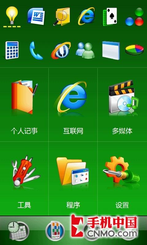 HTC HOME也是PPC玩家经常使用的一个插件,笔者测试了几个版本显示效果都很离谱,不是图标偏移就是横屏显示不正常。其中就数D900版的HTC HOME显示最正常,除了图标过小外功能完美。
