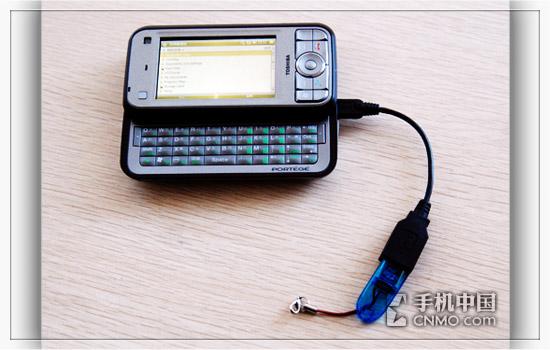 东芝G900支持usb host功能,可以让手机具有热插拔USB设备的能力。这个功能非常实用,G900自带了一条miniUSB—USB的转接线,可以将电脑上的U盘、读卡器、鼠标、键盘插在东芝G900上使用。