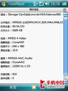 将一段VGA视频压缩至885kbps、15帧左右的水平TCPMP可以流畅播放。说实话,如果把脸贴到屏幕上看,是能够看出视频效果的精细程度的。但由于视频帧数不够,流畅度不是很好,但是如果将视频控制在30帧左右的话,VGA分辨率的电影会非常卡。