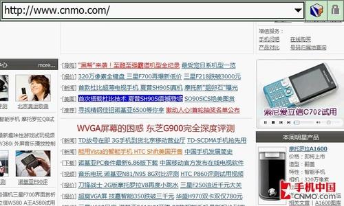 Opera 9.5竖屏状态下表现出色,具有极强的阅读CSS能力,可以真实反应网页的原始面貌,放大缩小和拖拽操作也非常流畅。但该软件暂时不支持G900的横屏状态,其实这并不奇怪,G900的屏幕的确是太宽了。
