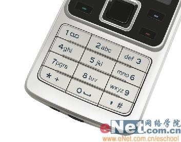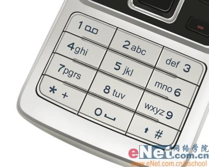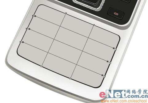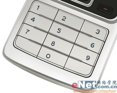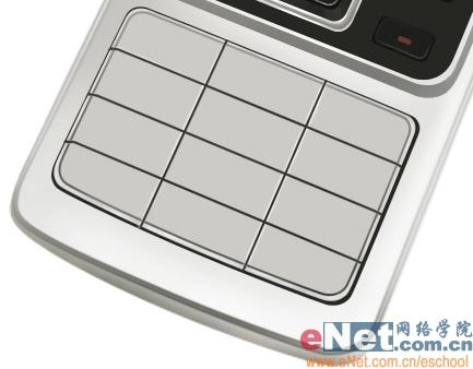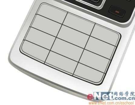 13.将黑色的部分复制一份并缩小用曲线工具调整为亮灰色做为键面,然后用钢笔工具勾出按键之间的细缝,如下图所示: