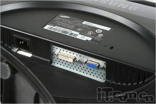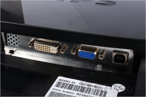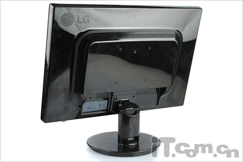 其背部也不再使用整块背板覆盖,L227WT的背板可看做两部分,前半部分安放液晶面板,后半部分呈跑道状则安置了PCB控制面板等。这后背的隆起的三侧均有大量散热孔,保证液晶工作稳定。在其中LG也留有VESA 10*10挂墙孔。