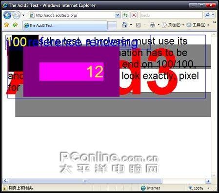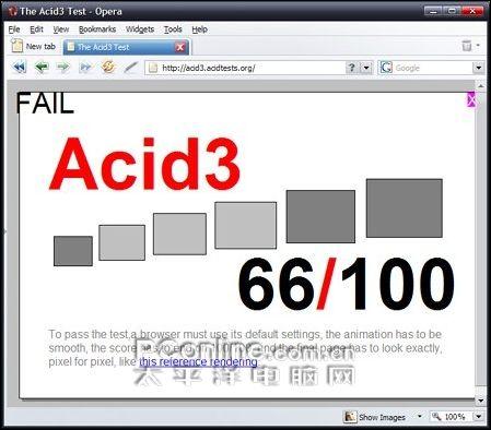 【简评】 为适应日益更新的网络发展,新一代Acid3测试标准应运而生。和老版本相比,Acid3更侧重于对浏览器WEB 2.0规范的考核。而且,新版Acid3除了保留与Acid2一样的图形测试之外,还特意增加了一项分值显示,以便让我们更轻松地判别出各款浏览器的Acid3支持能力。而从最终的测试结果中可以看出,Safari在此环节测试中,一举夺魁。超越了其他对手近十个分值。而可怜的IE7,仍然没能逃脱垫底的命运,仅有的12分,实在令人失望。
