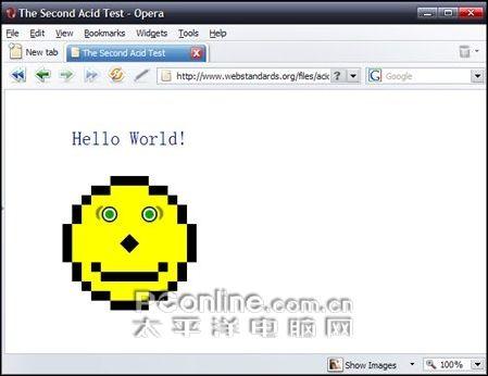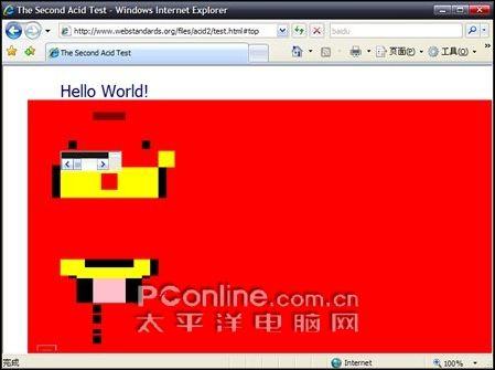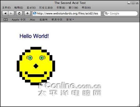 【简评】 Acid2是针对网页浏览器及设计软件,就支持HTML、CSS 2.0、PNG图像标准的一项综合测试。通过这个页面,我们能够快速辨识出浏览器在网页排版中的漏洞。而测试的标准,就是能够正确排版出一个黄色的小笑脸。从上面的测试中,可以看到。除IE7以外,其他三款页面浏览器,均能很好地完成Acid2排版,Safari在这一环节的测试中表现不错。