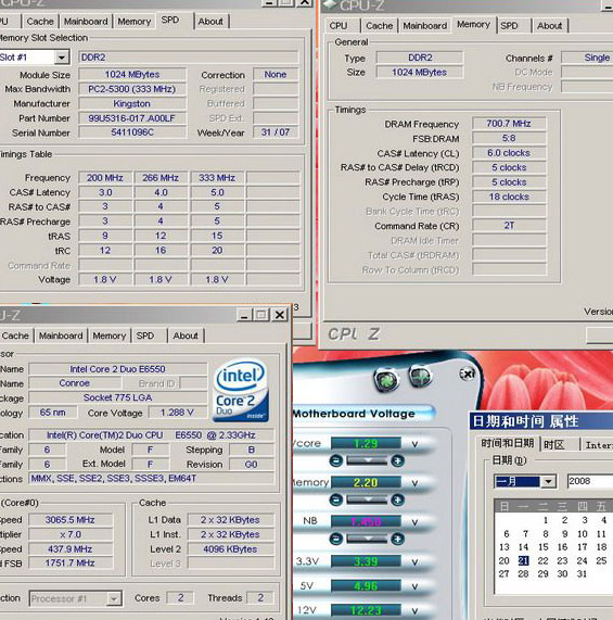 外频最高可在风冷上达到600外频,所以用来超E2140一点问题都没有,既然是高外频的E8200/E6550也完全不是问题。