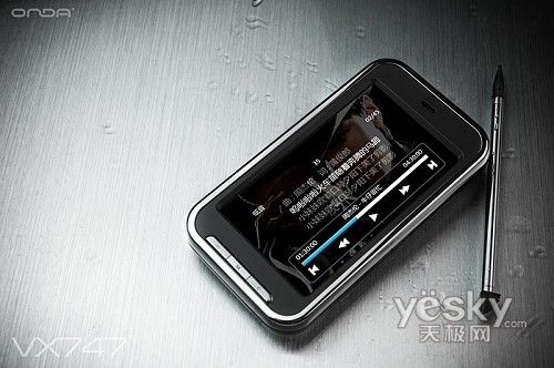 昂达VX747融入了目前最为先进的触摸式操作,异常的直观方便。而更适合人们聚焦观看的3.0英寸16:10的真宽屏(分辨率400×240),表现更为出色、真实。高达400MHZ的芯片处理速度支持以及REAL官方授权,使VX747能轻松实现WQVGA分辨率(720×576)的RM/RMVB格式外,还支持AVI/FLV/MOV/ASF/MP4/WMV/3GP/MPG等视频格式等格式的直下即播功能。此外,VX747还支持APE/FLAC无损压缩音乐格式;FM收音、图片浏览、电子书、多任务操作、游戏、视频断点续播、更换主题背景、支持32GB Micro SD卡(TF卡)等功能配置应有尽有。内置锂电池,可支持18小时音频或7小时视频播放。