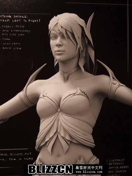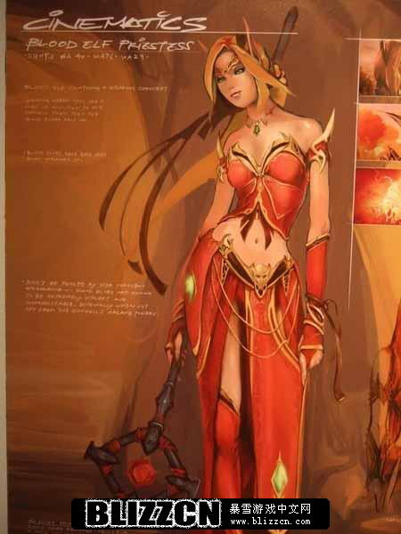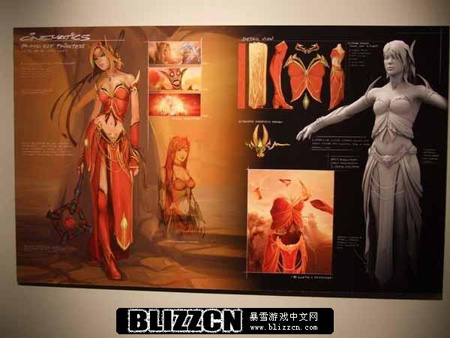 原画内容包括魔兽世界以及暗黑破坏神,另外还有魔兽争霸的角色模型图片,制作非常精美。据暴雪工作人员介绍说,在魔兽世界游戏中血精灵女性角色,是完全按照亚洲女性原型进行创作的,除了娇小的身躯,据说胸部模型也是……