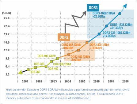 早在2006年,Intel推出了全新酷睿架构的处理器,AMD平台也升级至AM2接口,这对是被认为处理器最为动荡的一年。然而正因为如此,更高端的处理器,其频率的提升,必然要求有更高频率的内存与之搭配,即便是DDR2 800内存也会逐渐成为系统性能的瓶颈,所以更高频率的内存将会成为下一代处理器的标配。但由于DDR2内存本身设计的限制,其频率已经不能再满足更高带宽的平台,所在早在几年前提出的DDR3内存本应开始大量上市和普及化。不过,现实中的情况并非如此……