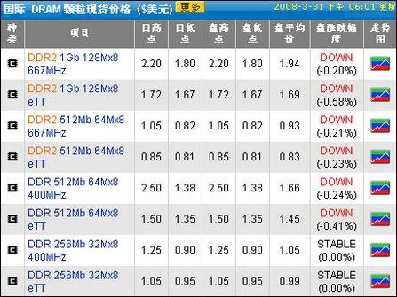 当初各大主板和内存厂商都信心十足地预计2007年会大举推行DDR3内存,但到现在,市面上DDR3内存不仅价格不菲,而且货源十分稀少,多数消费者都不乐意选购。加上近段时间国际DRAM颗粒价格不断下滑,尤其以DDR2内存颗粒跌价幅度最为明显,所以价格低廉的DDR2内存更加容易受到用户们的青睐。而且现在DDR2 667与DDR2 800两者之间的差价十分微小,零售价仅有5-10元之差,也代表着内存市场已经从DDR2 667全面过渡至DDR2 800。