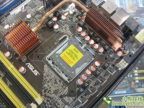 供电方面一直是华硕向来特别注重的,这主要与其定位超频和DIY发烧友的策略不无关系。这款主板采用了8相供电回路设计,全部采用高品质的红色固态电容,保证了主板在恶劣环境下稳定运行,延长了主板的使用寿命。另外,该主板还注重在散热方面下功夫,为了平台在超频时的更稳健发挥,其在北桥芯片和MOS两大散热大户上都加装了纯铜散热片,这就是华硕引以为豪的Stack Cool2技术,可有效降低它们的热量,从而保证超频的稳定性与安全性。