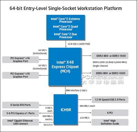 除了能让DIY玩家率先领略新芯片组的性能外,X48主板的出现也让过去半年撑起Intel颜面的X38主板退居二线。但细心比较两者的差别我们不难发现,除了支持更高的FSB频率和内存频率外,X48芯片组实在拿不出比X38更高具技术含量的规格,甚至它还继续沿用了前辈搭配的ICH9系列南桥。